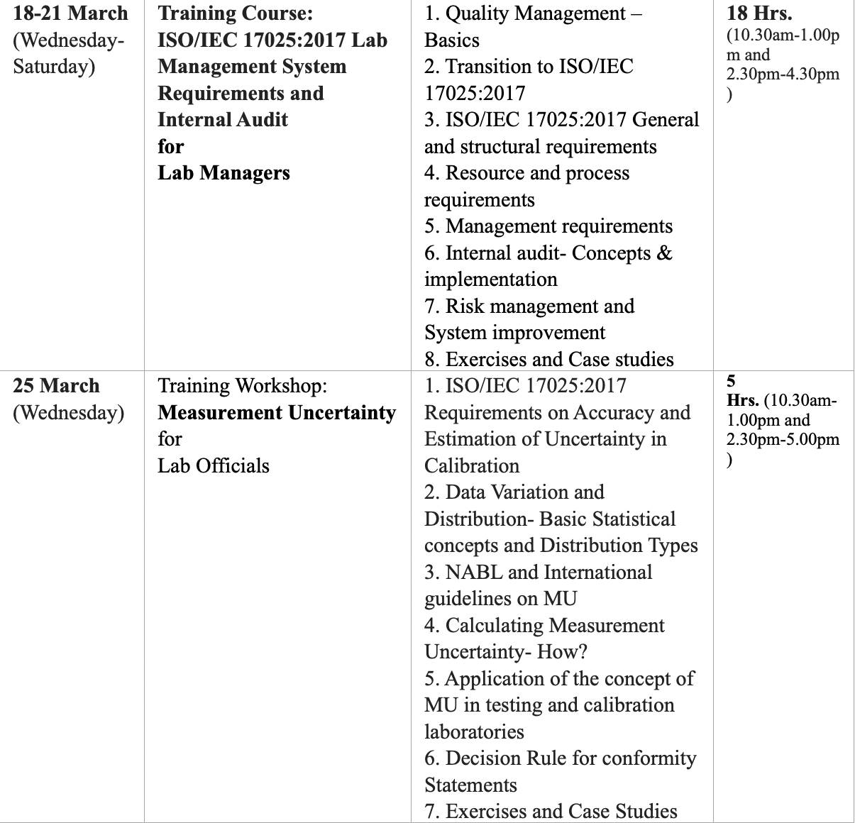 Who can attend- CEOs, Directors, MRs, Quality/Technical Managers, Line Managers, Freshers, Laboratory Staff, HR, Process and Maintenance Officials, Persons working in Manufacturing, Services, Laboratory Services or Education Sector.
